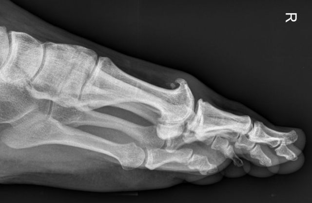 Am Großzehengrundgelenk treten häufig Abnützungsveränderungen (Arthrose) auf. Dabei werden vor allem „oben" am Gelenk knöcherne Anlagerungen tastbar. Diese führen einerseits zu Schmerzen, andererseits zu einer Bewegungseinschränkung des Großzehens.