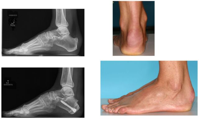 Bei der Calcaneusosteotomie wird meistens über einen aussenseitig am Fersenbein gesetzten 3 cm langen Hautschnitt gearbeitet. Die häufigste Technik ist eine sogenannte Verschiebeosteotomie (sliding Technik). Dabei wird der hintere Anteil des Fersenbeins inklusive des knöchernen Sehnenansatzes der Achillessehne entweder nach innen (medialisierend) oder nach außen verschoben (lateralisierend). Die Fixierung erfolgt mittels Kompressionsschrauben. Diese Art von Operation erfolgt häufig im Rahmen der Korrektur eines erworbenen Plattfußes. Nicht selten sind begleitend noch andere Korrekturen zusätzlich notwendig. Nach der Operation muß für 3-6 Wochen eine teilweise Entlastung vorgenommen werden, um ein Anheilen des Knochens zu ermöglichen.