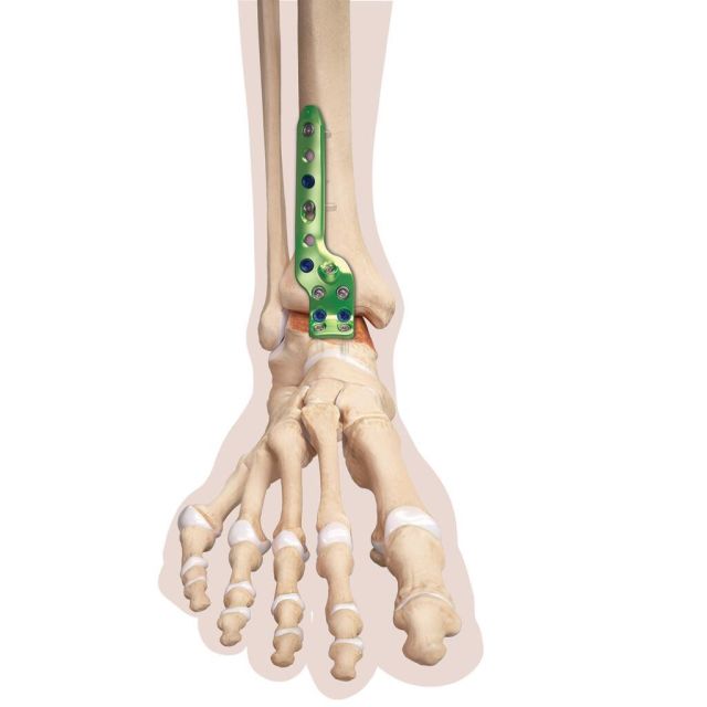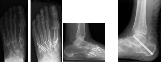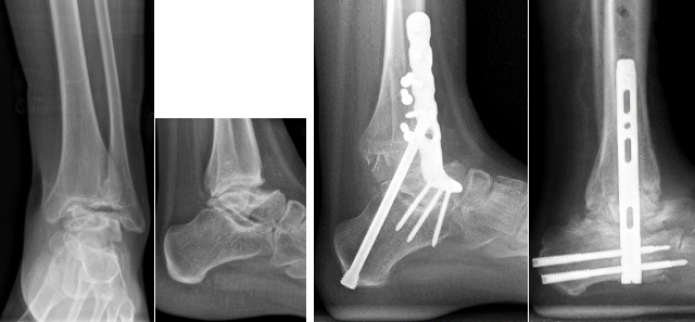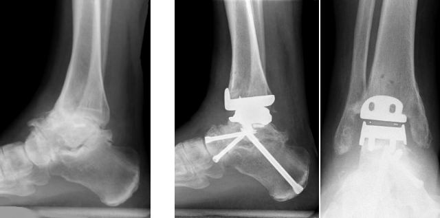Versteifung des unteren Sprunggelenkes mit gleichzeitiger Versteifung des Chopartgelenks und Prothese des oberen Sprunggelenkes